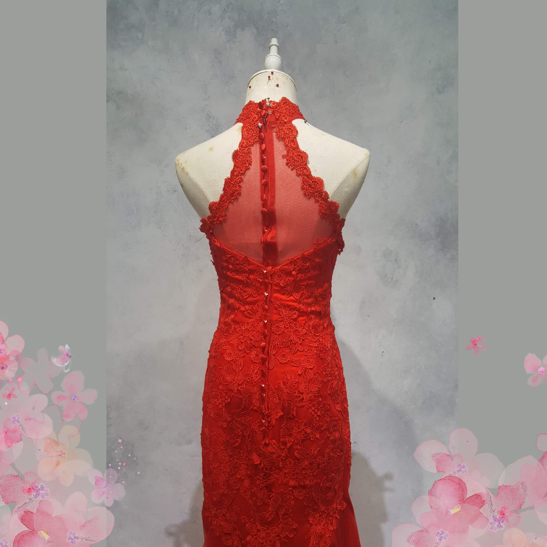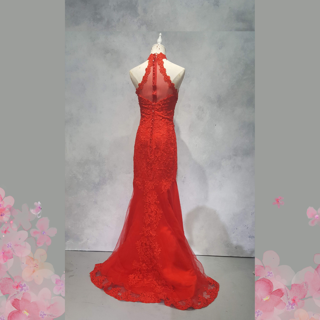 Evening Dress 412EV06 LL Red Halter Oriental Cheongsam Trumpet 42 Oriental Cheong Sam Qi Pao rental Malaysia Kuala Lumpur Petaling Jaya