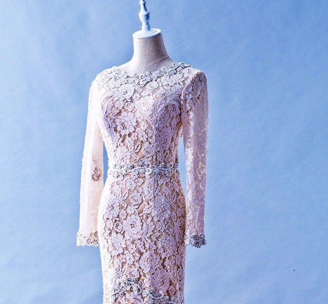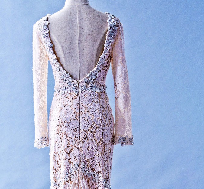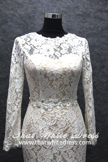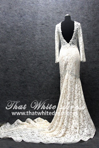 Silver - wedding gown S1408W10 LL Long Sleeves Peach Mermaid Trumpet Berta Bride