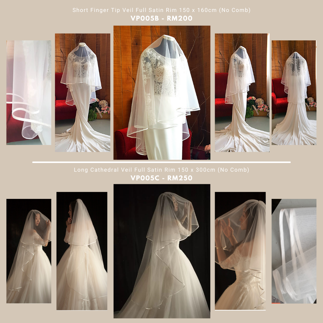 VP005c TWD Premium Bride Wedding Veil Satin Rim Long Soft Tulle Net Chapel Length no Comb/Veil Tudung Pengantin Nikah Sanding