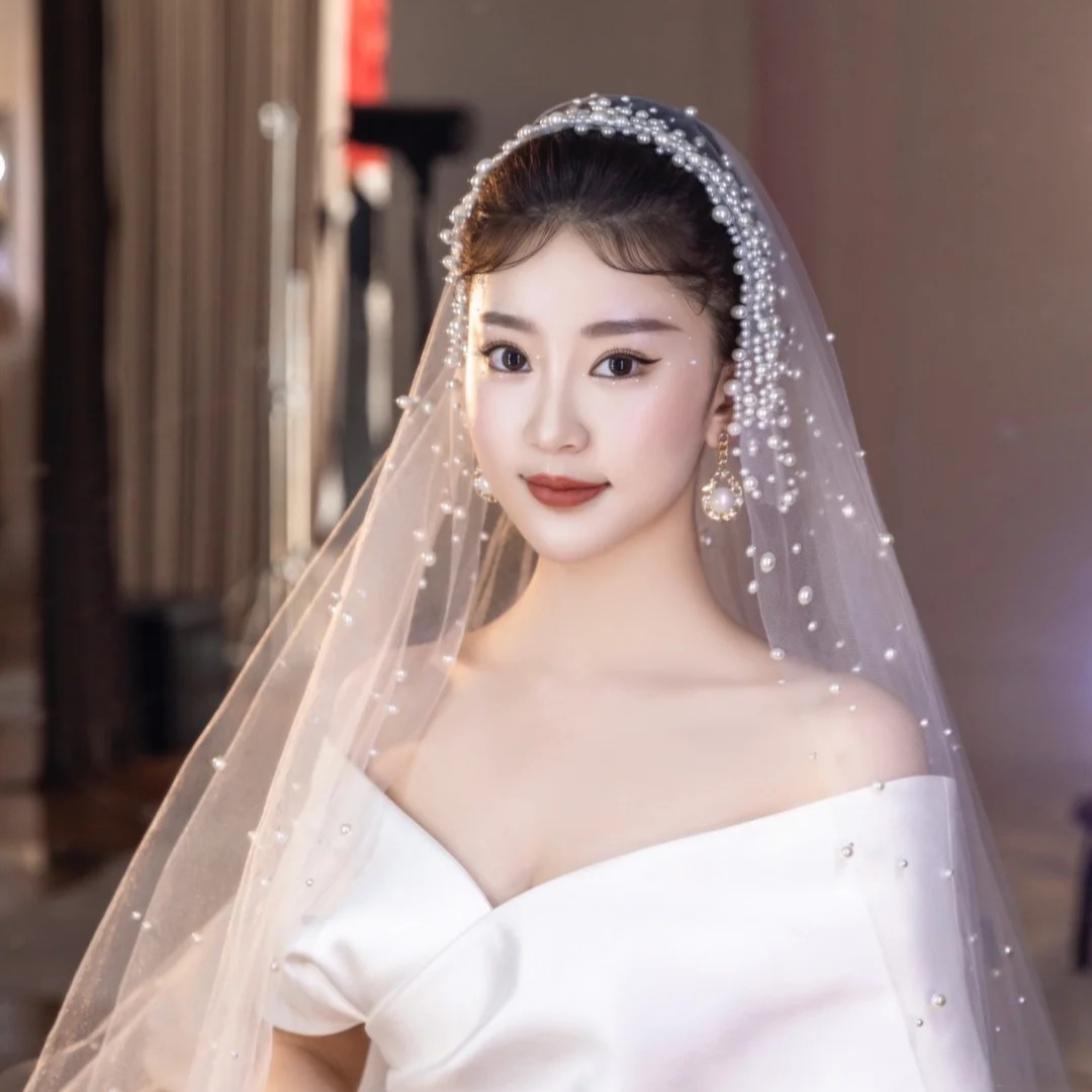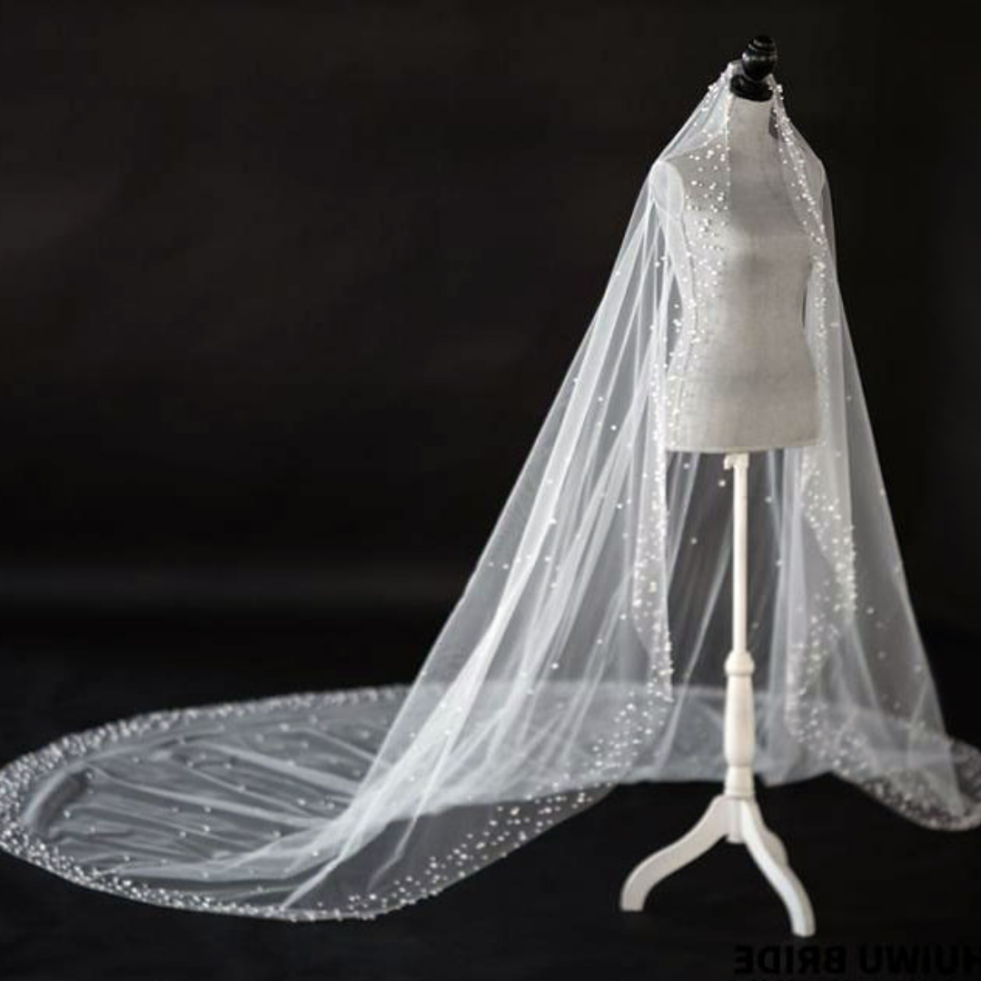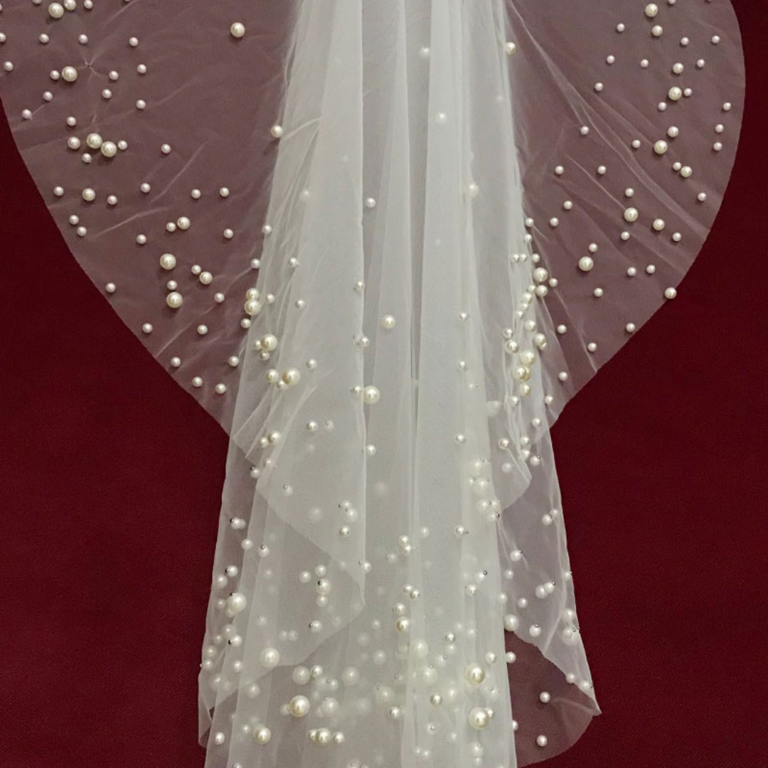 VTCM012b TWD Premium Bride Wedding Veil Single Layer Full Pearl Mid Length Short Soft Tulle Net Finger Tip no Comb/Veil Tudung Pengantin Nikah Sanding