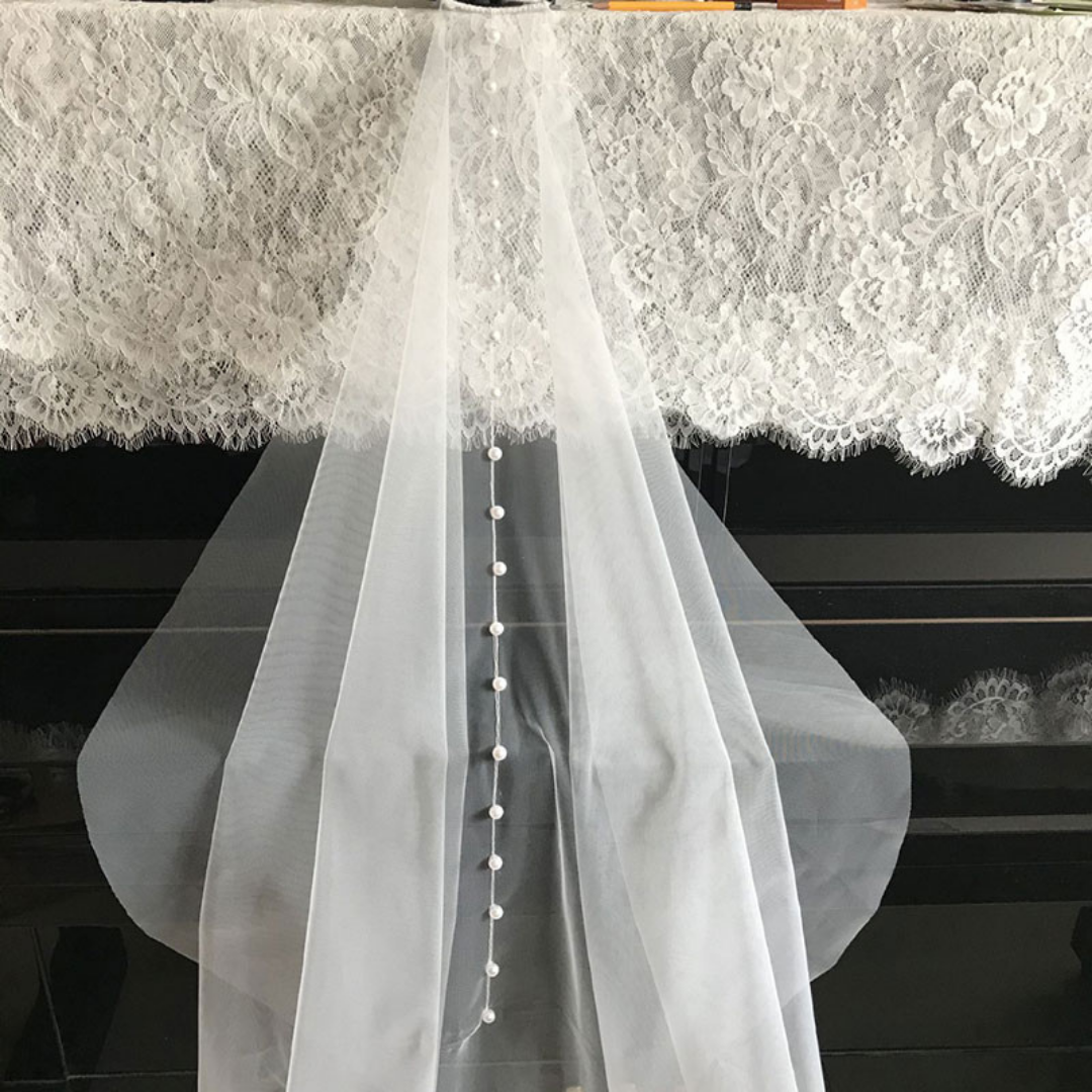 VTCM015b TWD Korean Style Wedding Veil Single line Pearl Back No Front Cover Soft Tulle Mid Length Finger Tip with comb/Veil Tudung Pengantin Nikah Sanding
