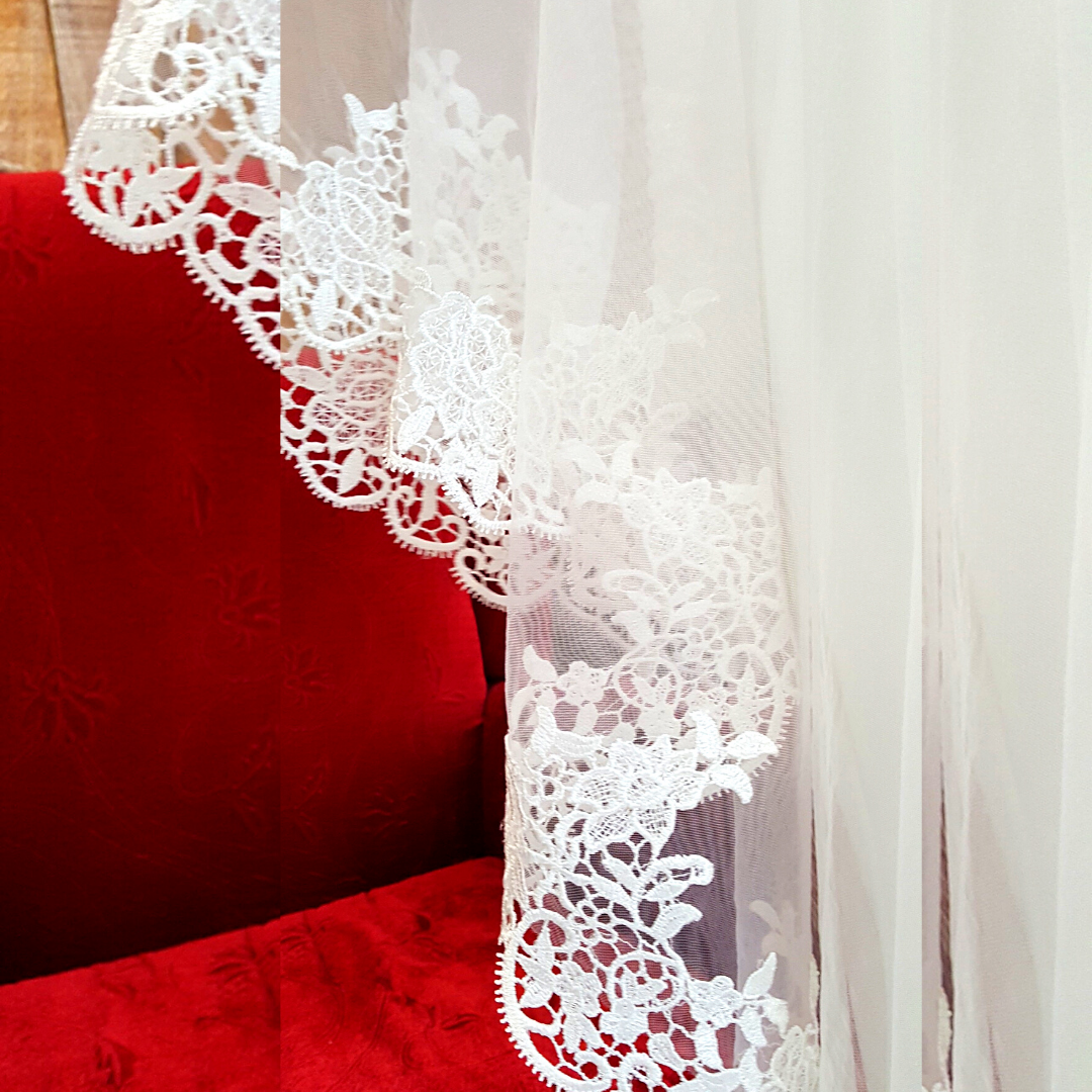 Type of Lace: French Guipure Lace, Full Lace along the border of the veil