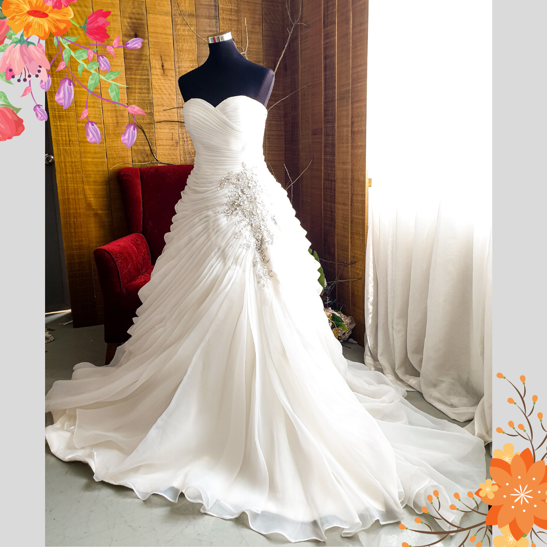 603LLWL01 LL Plus Sweet Heart Organza Pleated A line Nur a Plus size Bride Event Reception Dinner Dress rental Malaysia