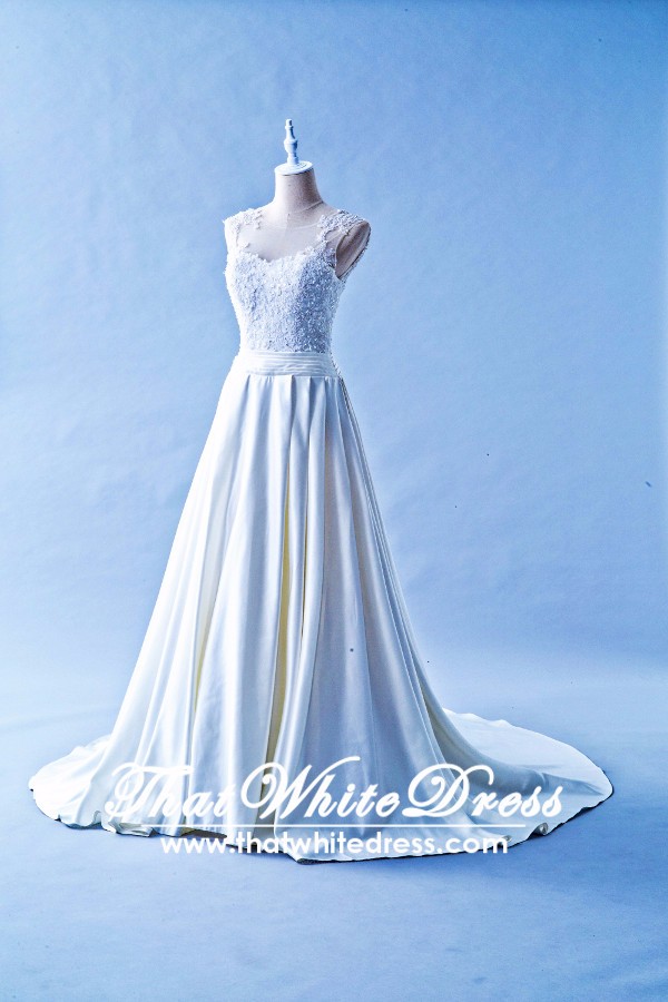 504W04 CS Illusion Neck Duchesse Wedding Dress Designer Malaysia