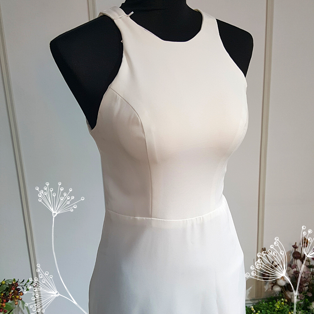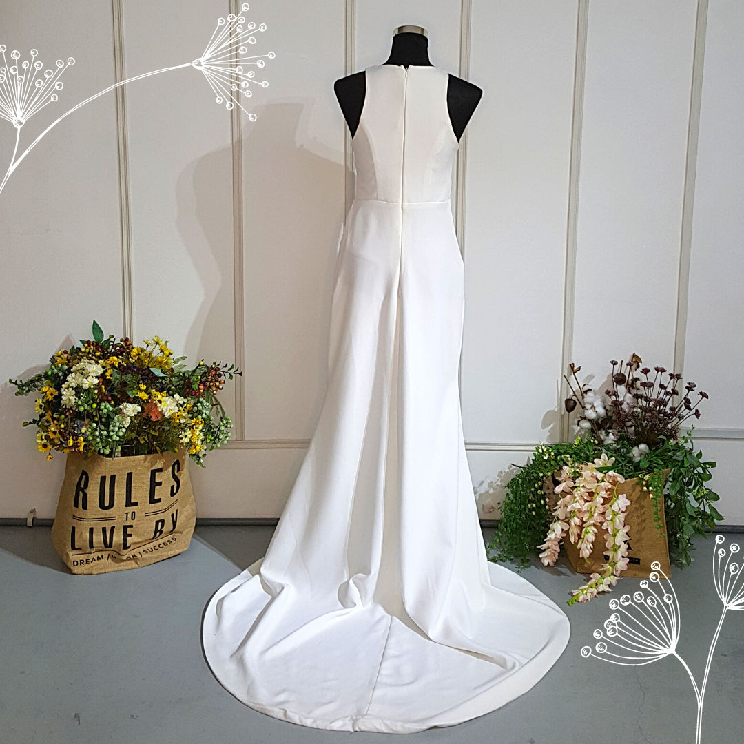 903YZW01 Emmie Halter Plain Crepe trumpet Wedding Dress
