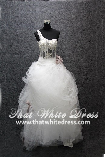 Designer wedding Gown S1503W03 IS One Shoulder Illusion Bodice Princess
