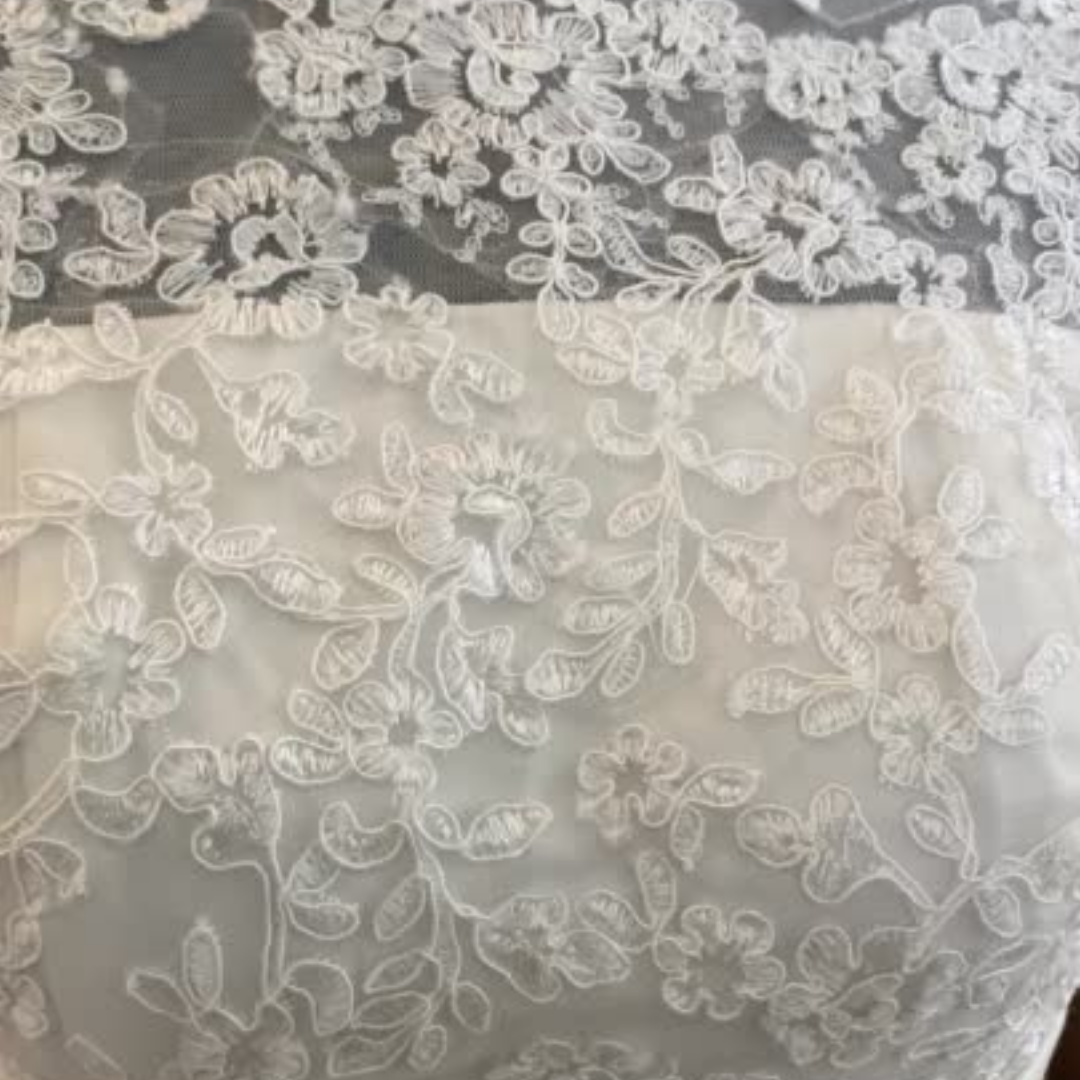 Featuring beautiful French Corded Alencon lace and lined in a soft layer of satin lining.