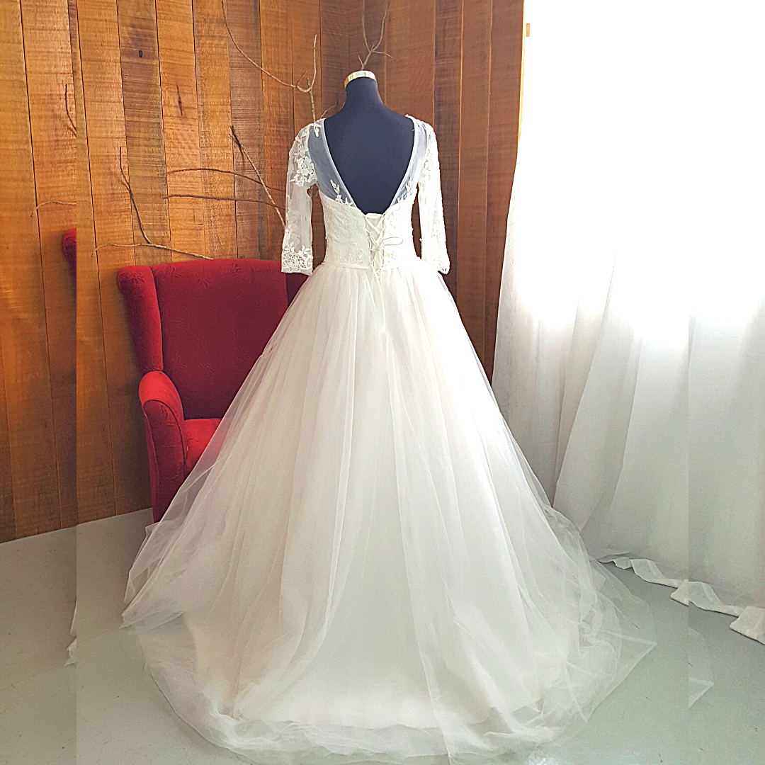 Can be teamed with a detachable long sleeves inner garment to convert it into a conservative covered back dress suitable for church wedding, muslimah wedding/majlis perkahwinan, or nikah.