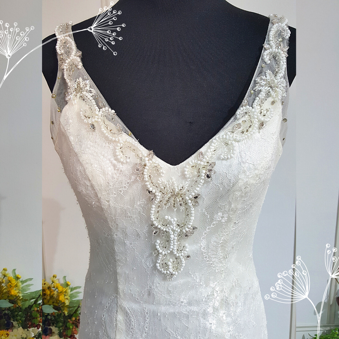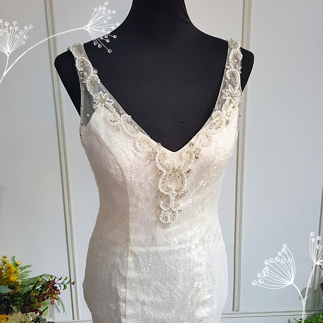 Featuring a beautiful full lace train that is stunning in photoshoot!