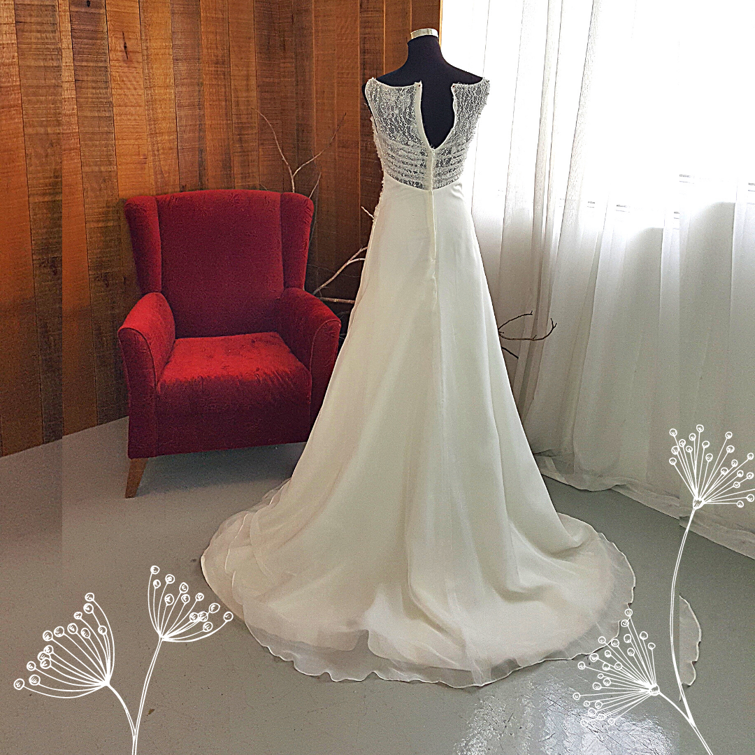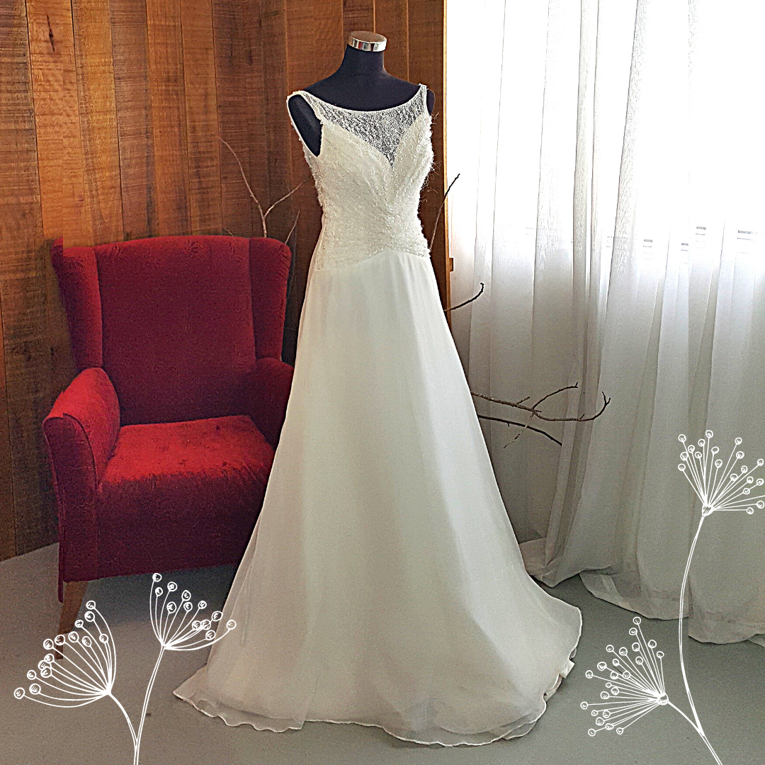 508W05 TY Boat Neck Illusion Neckline A line Beaded Zip a