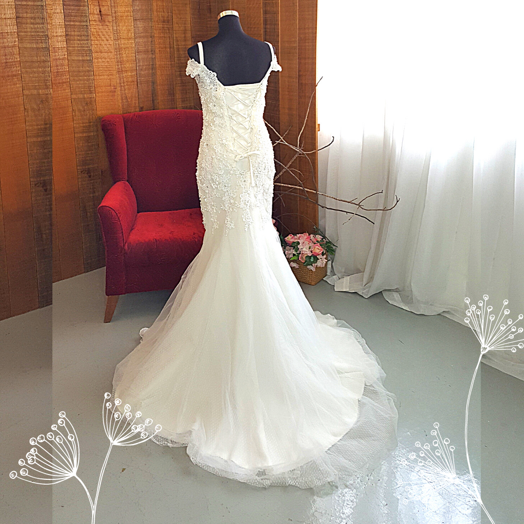 601W03 BR Off Shoulder Trumpet mermaid full lace wedding dress pearls