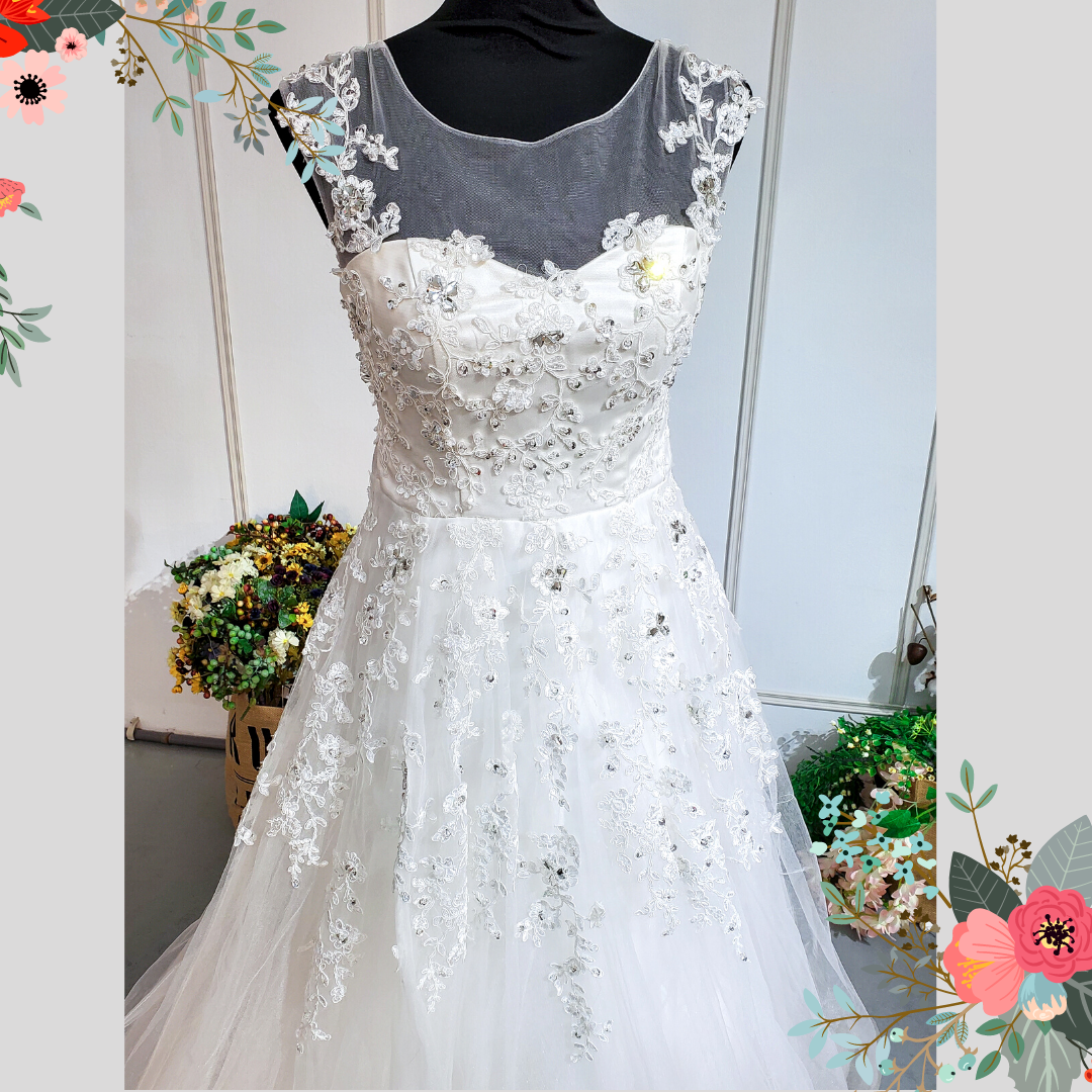 S1408W07 LL Illusioned neckline Princess Cap a Kahwin Pengantin Nikah