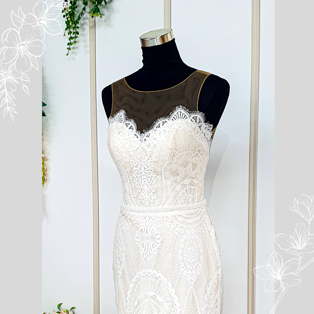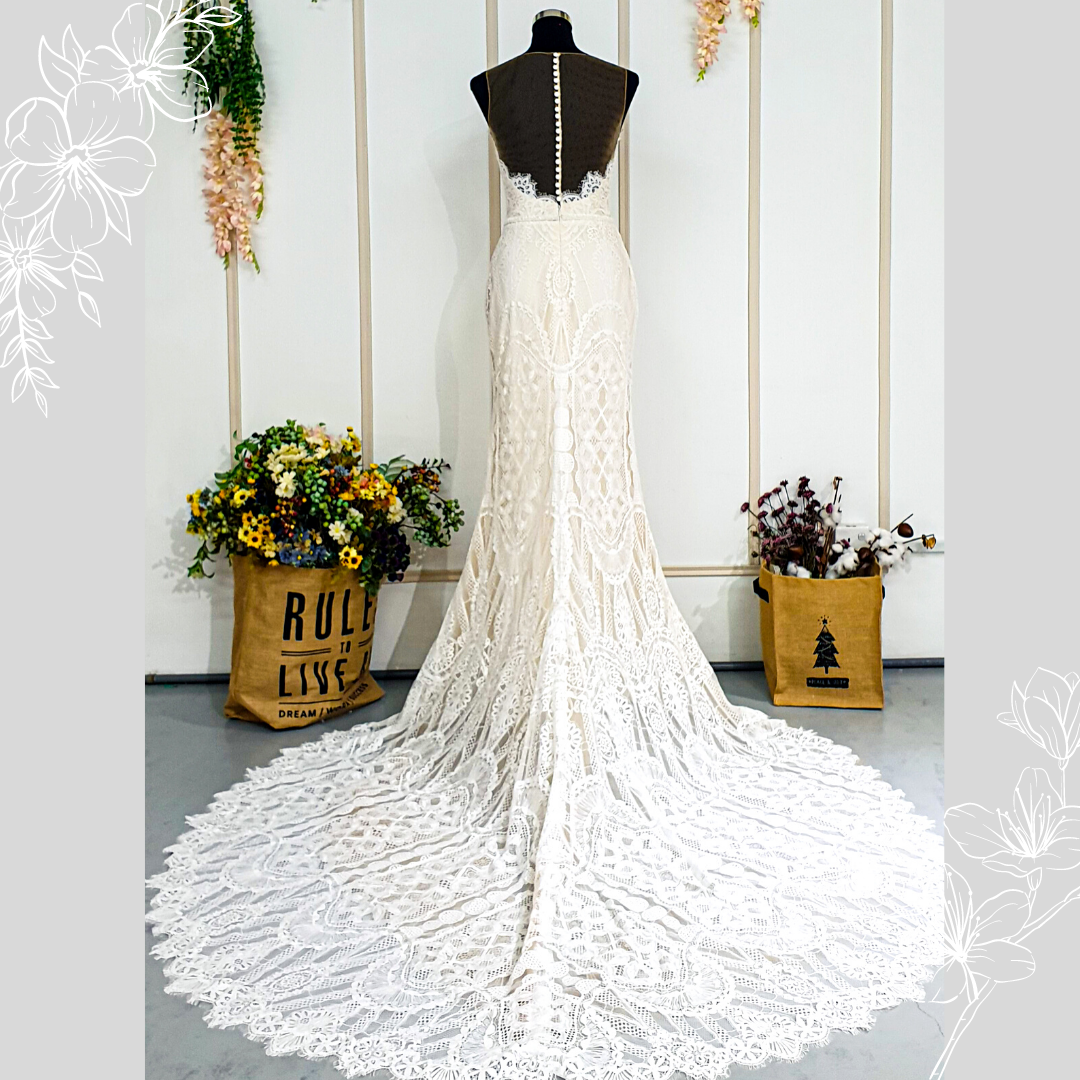 202BYW01 Cerona Skin Button BackIllusion Baroque full lace trumpet sheath bride malaysia rental custom make Petaling Jaya