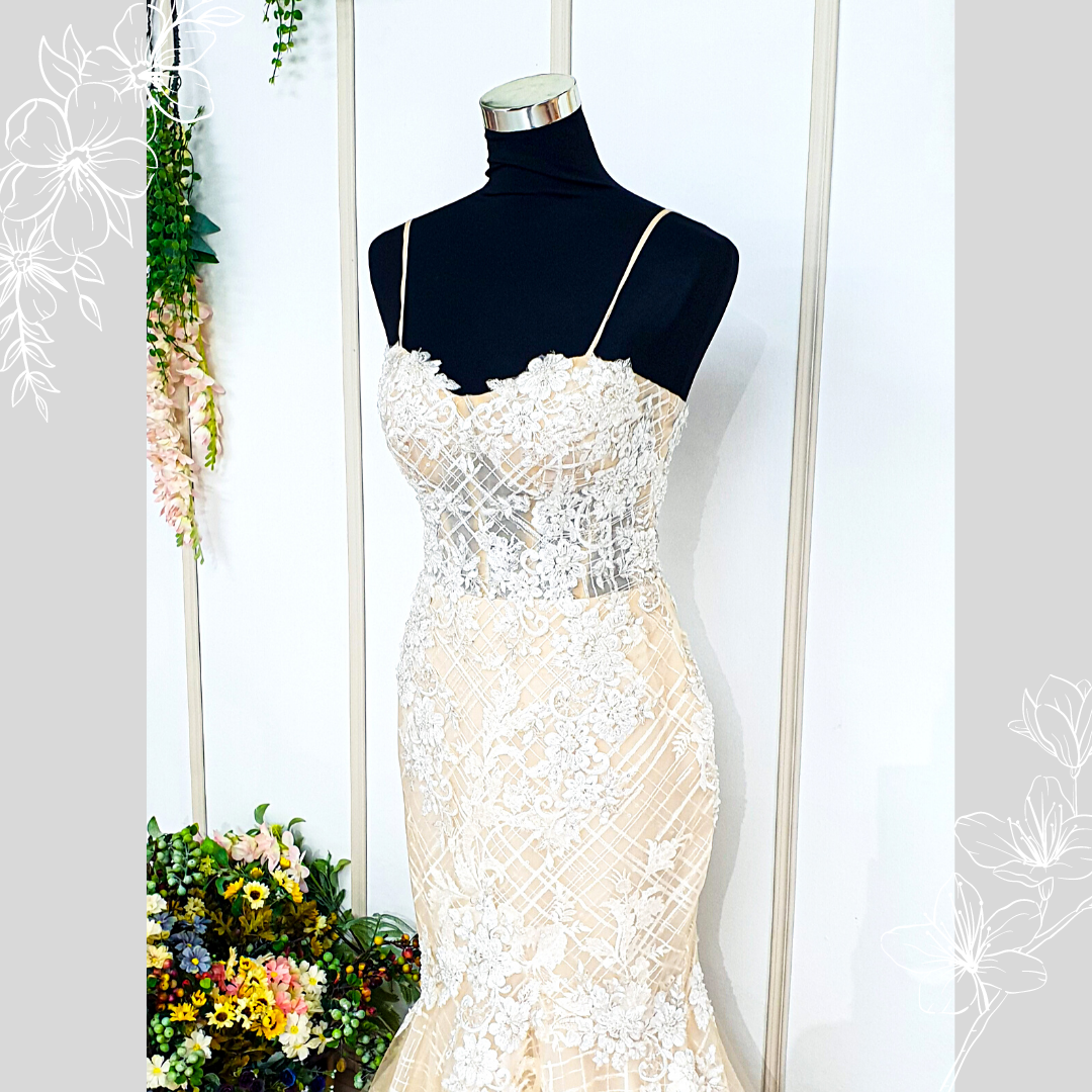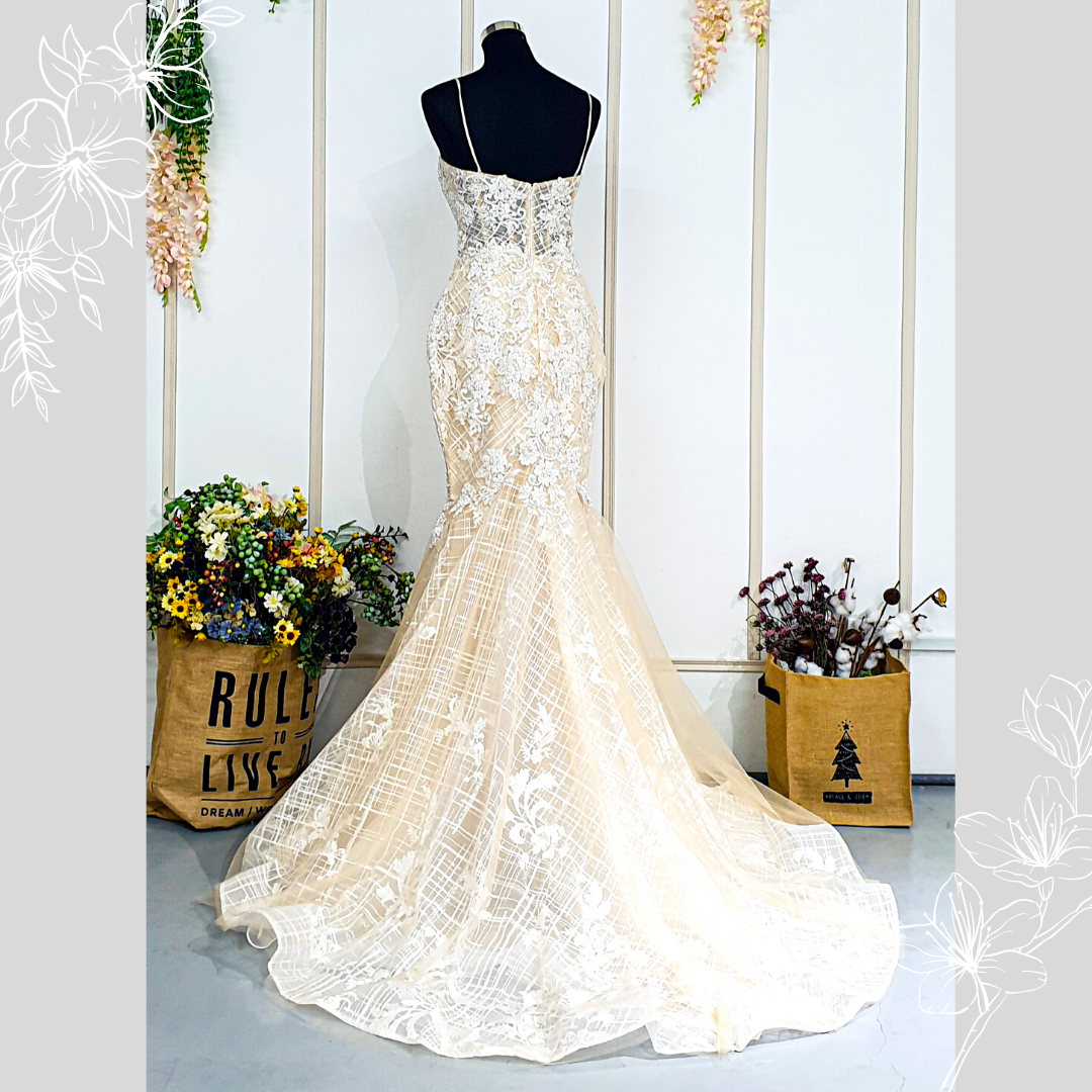 202BYW03 Kerona Champagne Spag chequered lace trumpet wedding evening dress Kuala Lumpur rental event