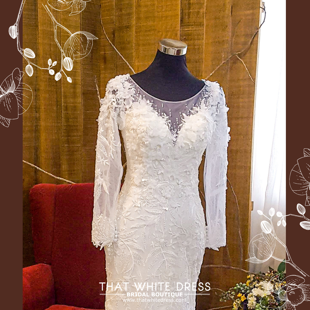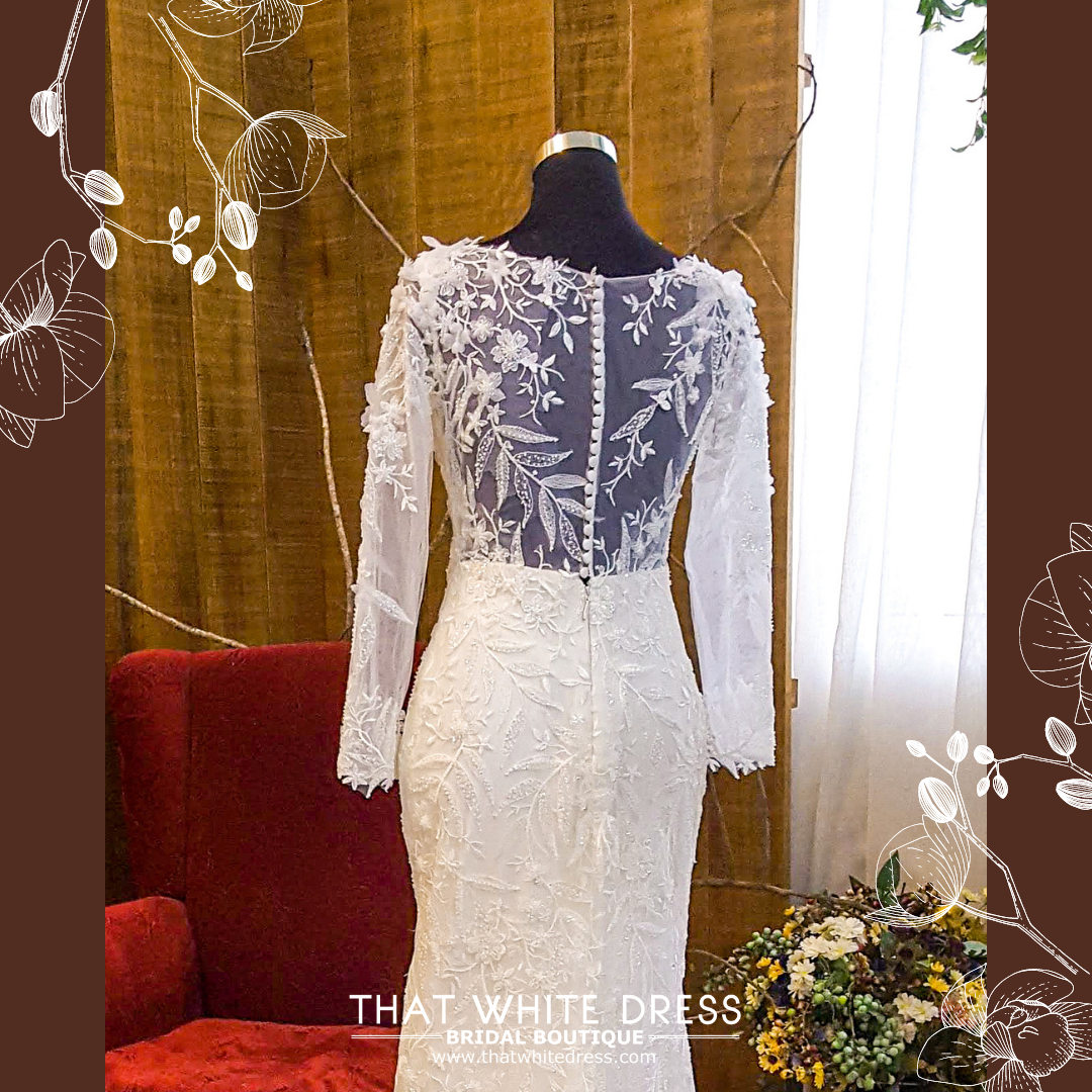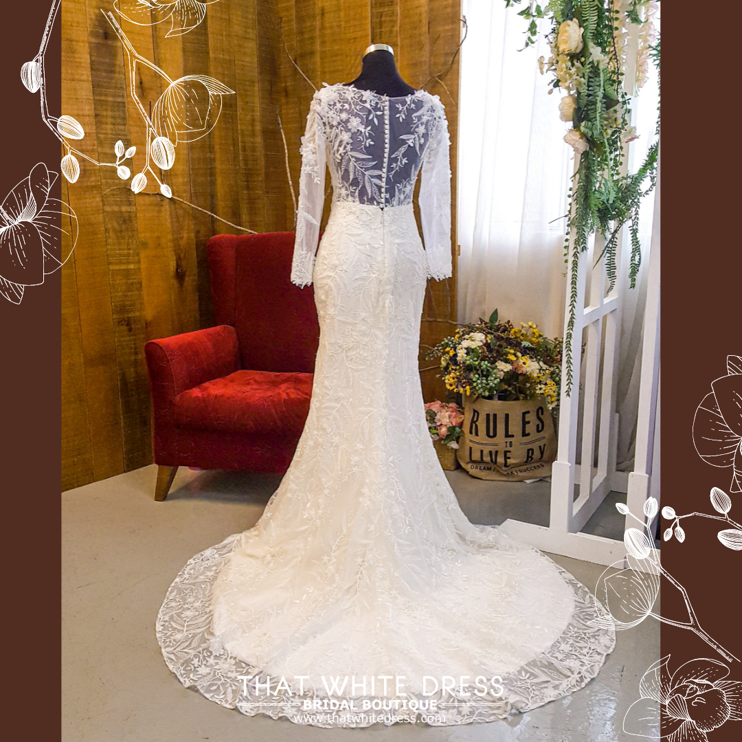 211BY11W02 Bailey Long Sleeves Lace Zip Back Trumpet floral a Gaun Pengantin Muslimah Malaysia sewa Kahwin Nikah